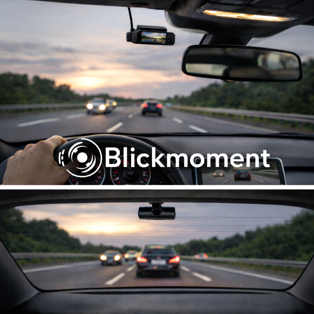 Die Blickmoment Dashcam verbindet dezentes, stilvolles Design mit modernster Technik. Ein Gerät, das nicht nur aufzeichnet, sondern versteht, was wirklich wichtig ist.